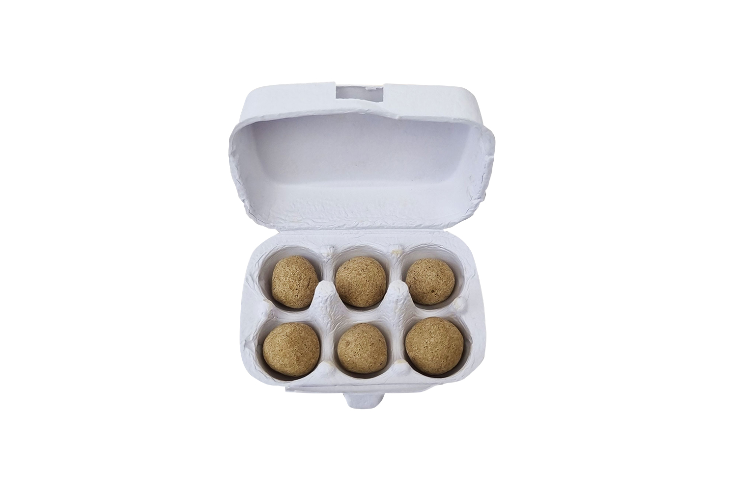 Saatkugeln in 100% recyclebarem Eierkarton. Enthält sechs Samenkugeln aus Erde, Lehm und Samen der Sorte Wildblumenmischung.