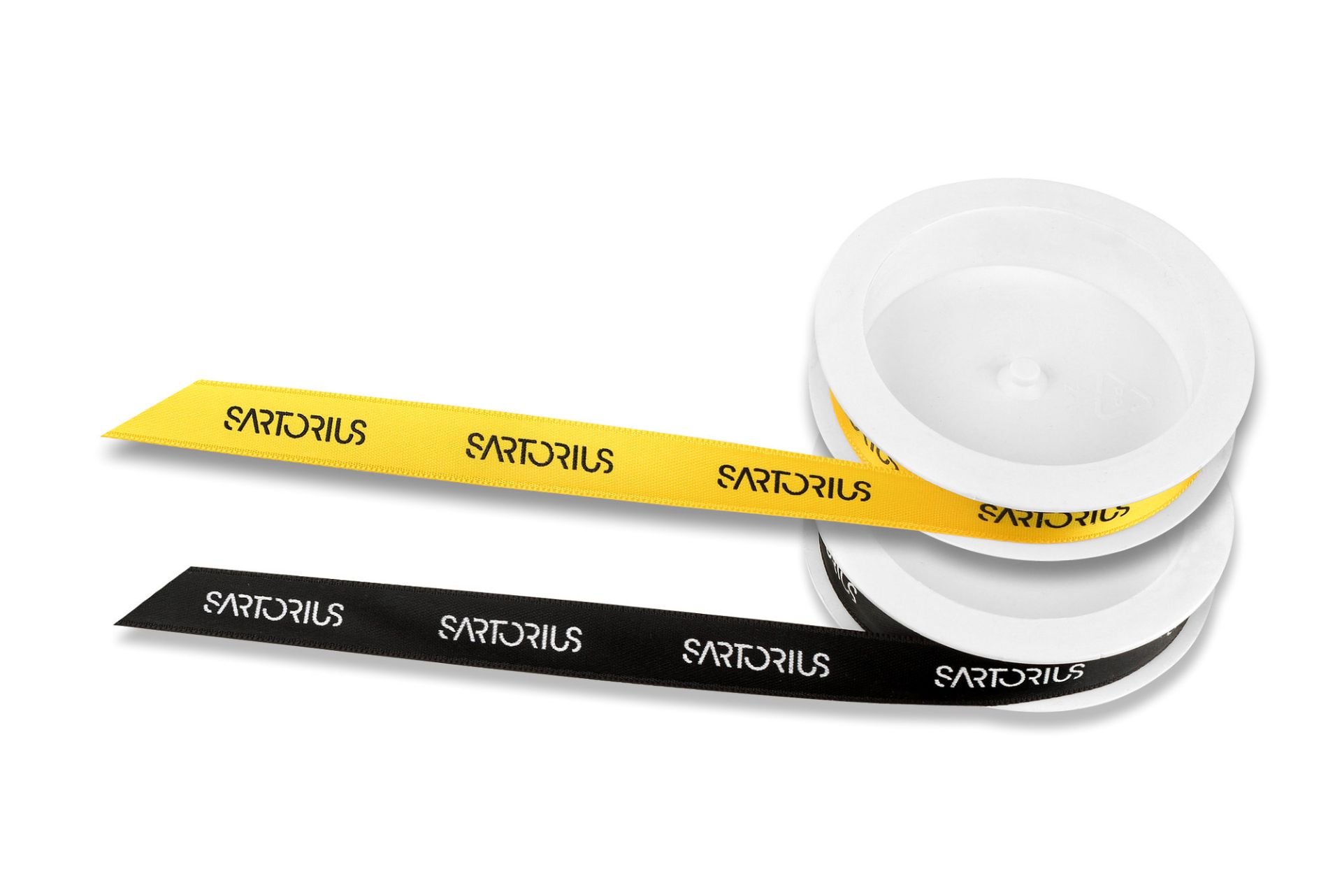 Doppelsatinband mit gewebten Rändern, 15 mm Breite, 5 m pro Rolle.Erhältlich in den Farben Gelb und Schwarz.